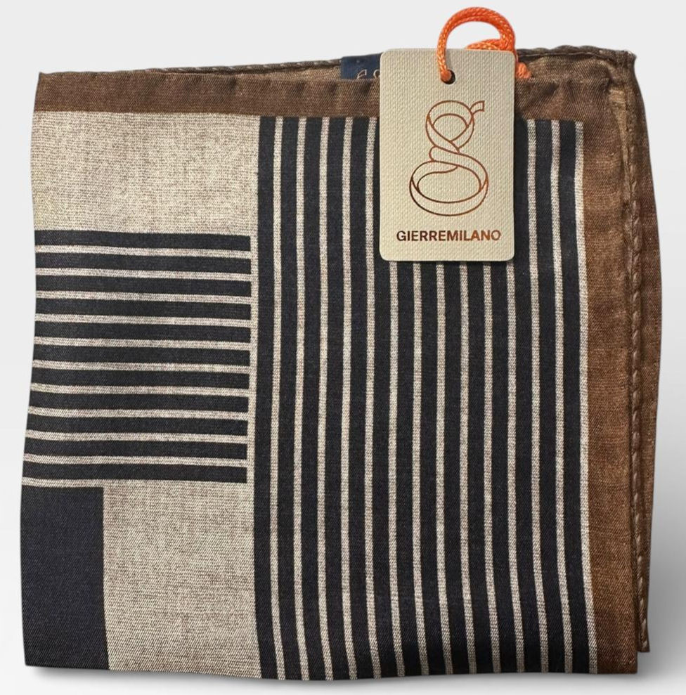 Pochette en soie "Gierre Milano" graphique dominante marron